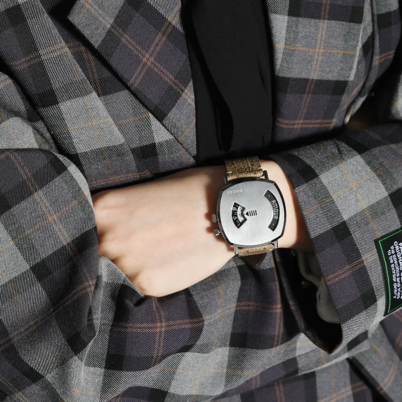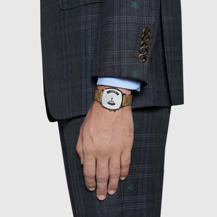 GUCCI Grip Collection Наручные часы Кварцевый механизм Холст Ремешок Серебристый циферблат Мужские часы