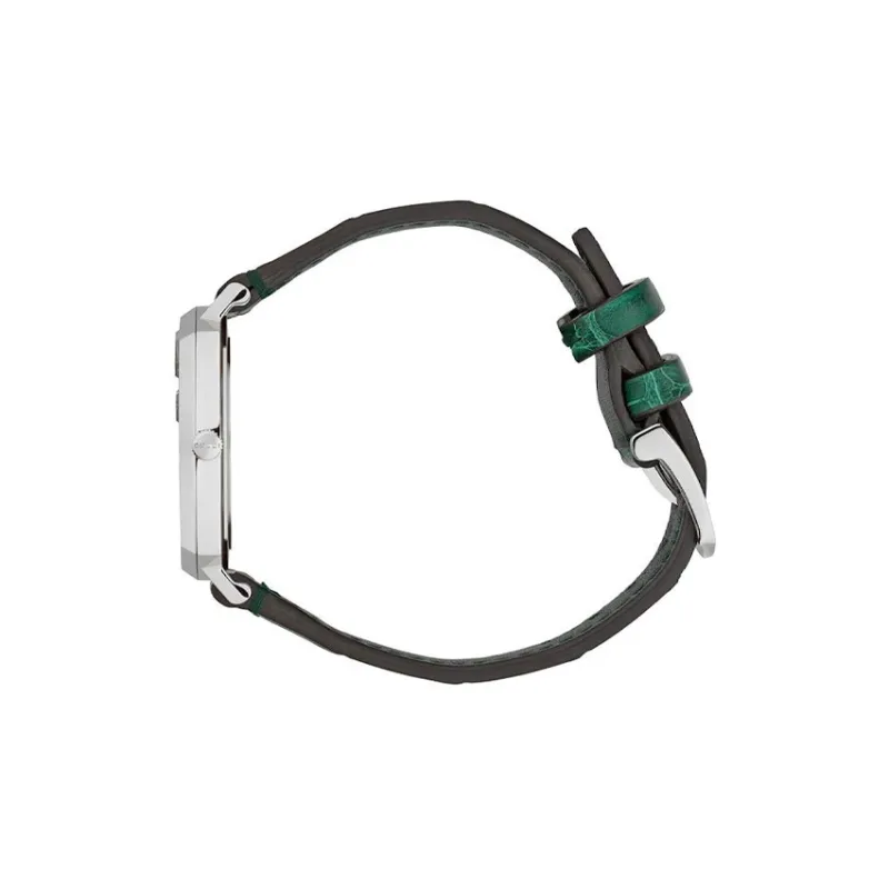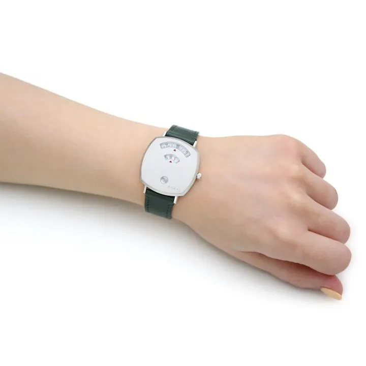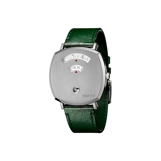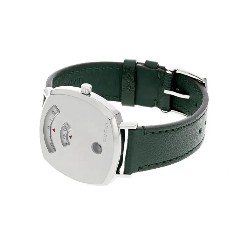 GUCCI Grip Collection Мужские часы Кварцевый механизм Коровья кожа Ремешок Серебристый циферблат