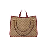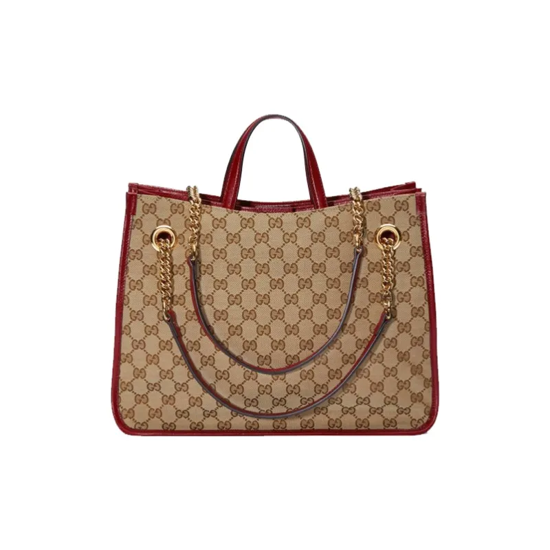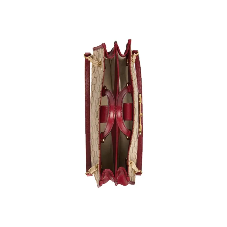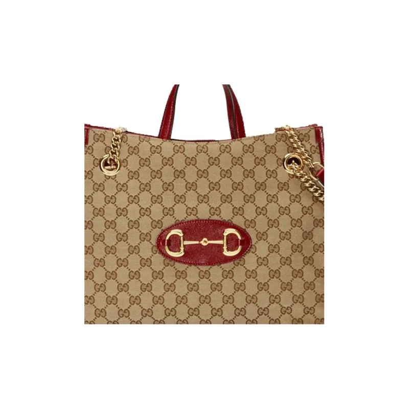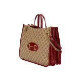 GUCCI Horsebit 1955 Холщовая Сумка Тоут Сумка Тоут Сумка Сумка для покупок Сумка с цепочкой Сумка через плечо Средний Женская Красная