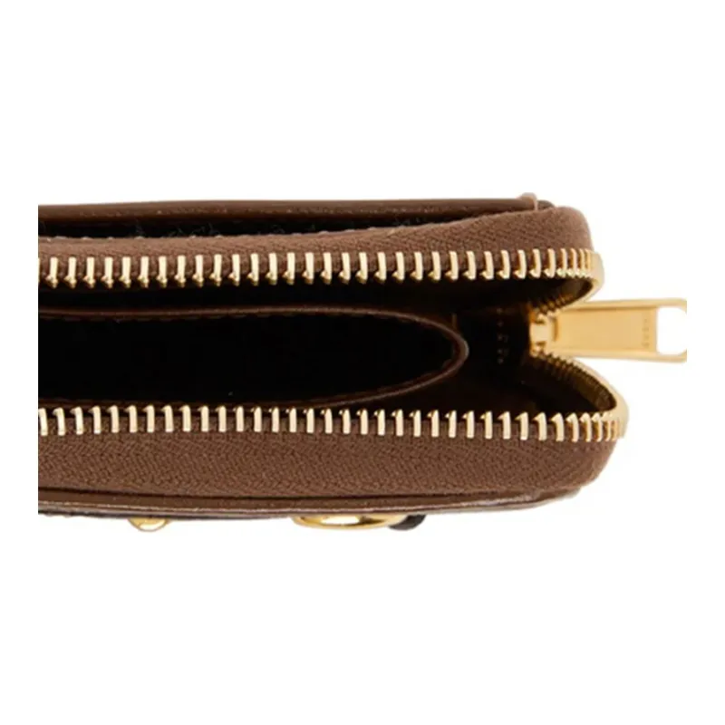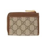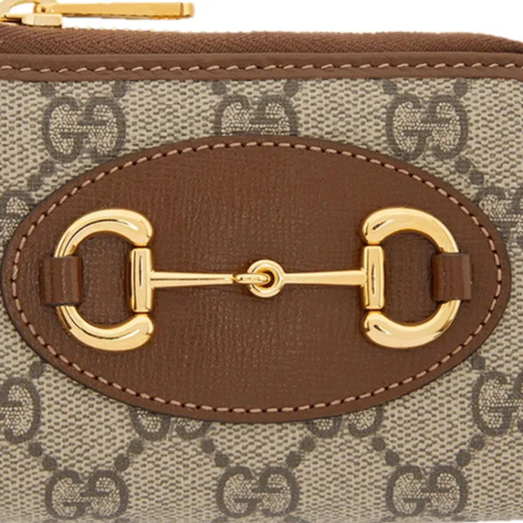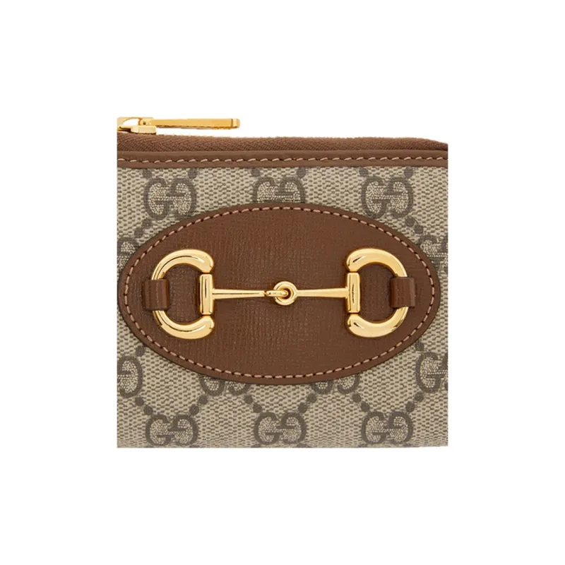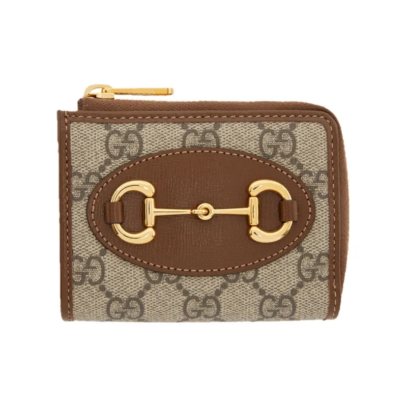 GUCCI Horsebit 1955 Холст и кожа Держатель для карт кошелек Женский Эбеновое дерево Коричневый