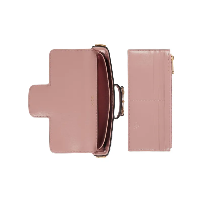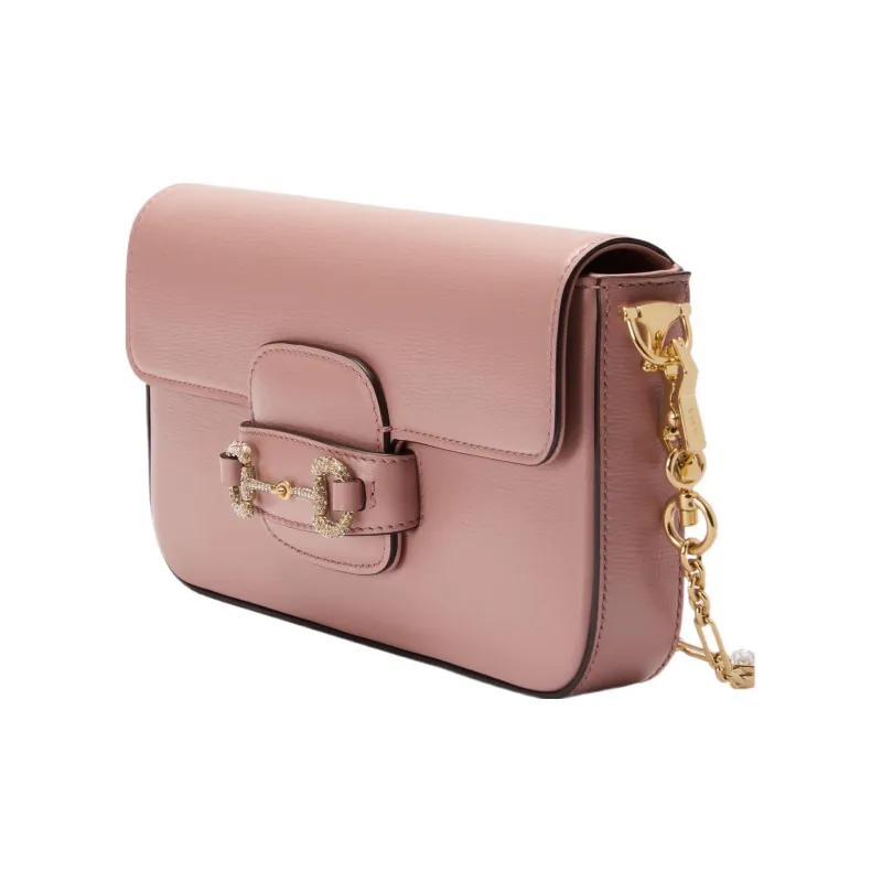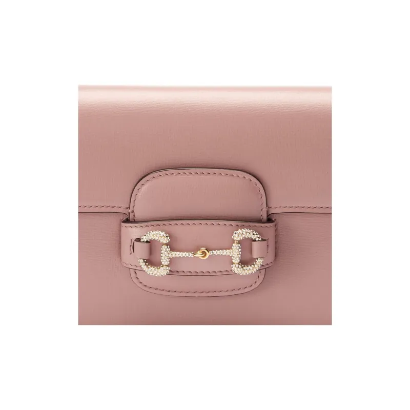 GUCCI Horsebit 1955 Кожаная Сумка через плечо Сумка на плечо Мини Женский Светло-розовый