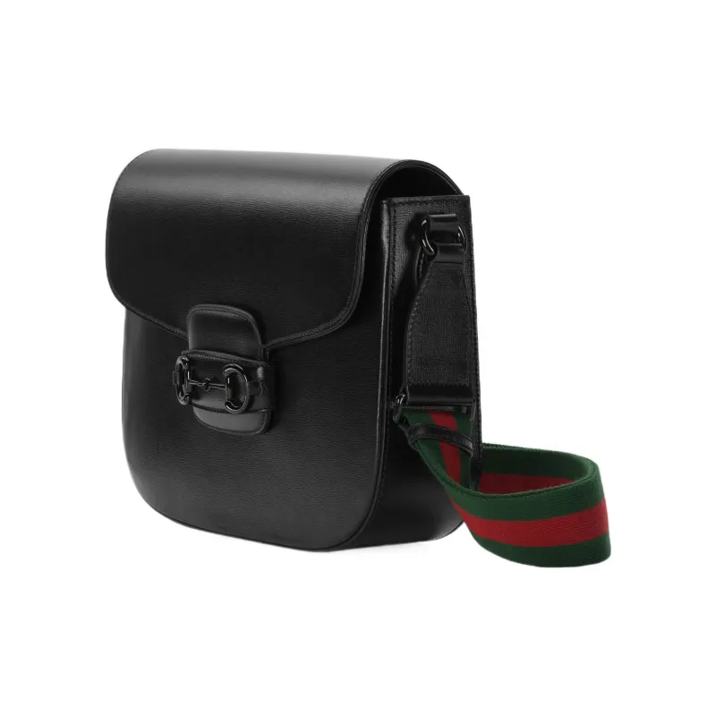 GUCCI Horsebit 1955 Кожа Курьерская Сумка Сумка через плечо Сумка на плечо Мужская Черная