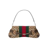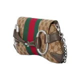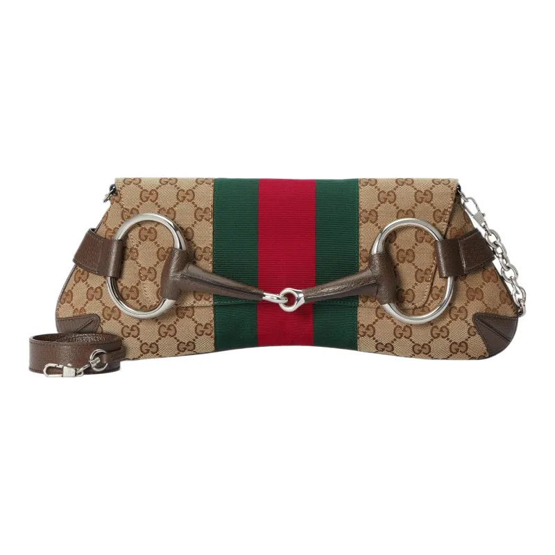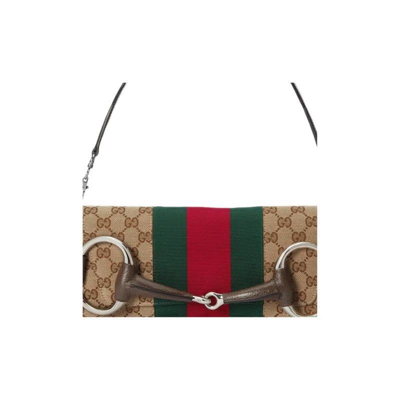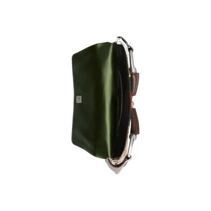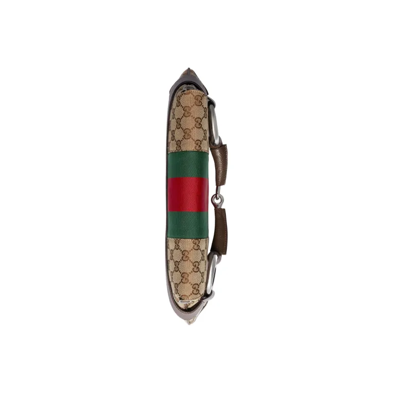 GUCCI Horsebit 1955 Кожа Репликация Плечевая Сумка Сумка через плечо Клатч Женский Бежевый и Эбеновый