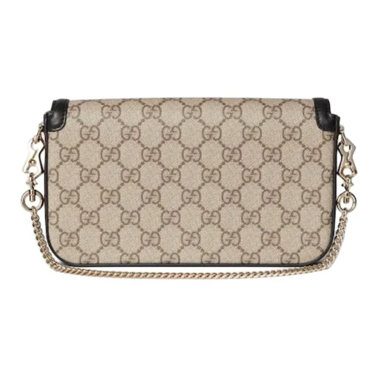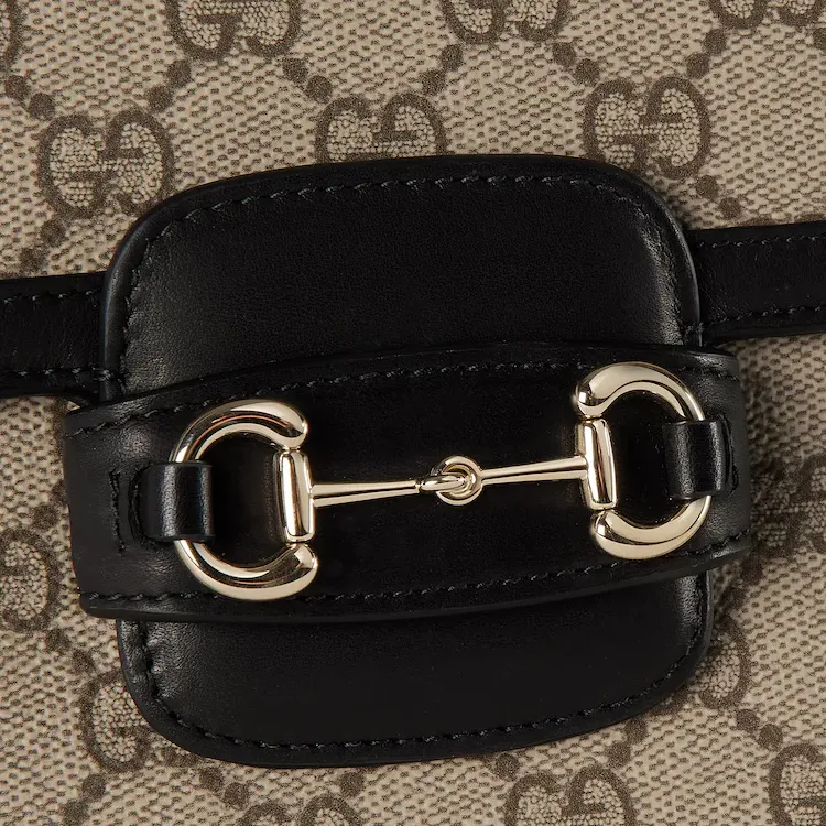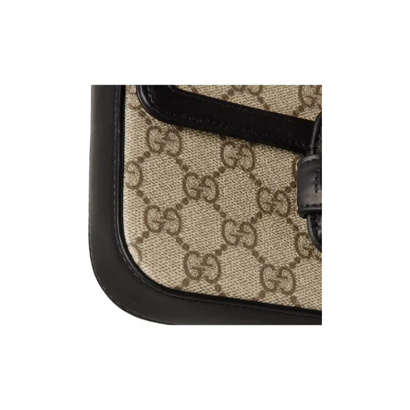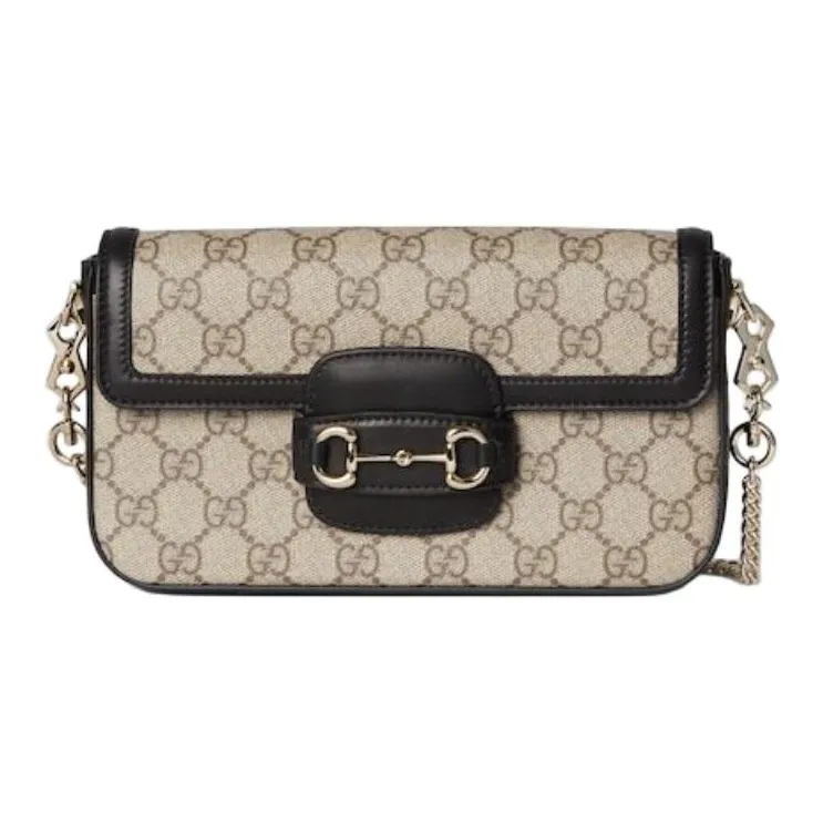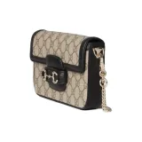GUCCI Horsebit 1955 Кожа Отделка Плечевая Сумка Мини Женская Бежевая и Темно-Коричневая
