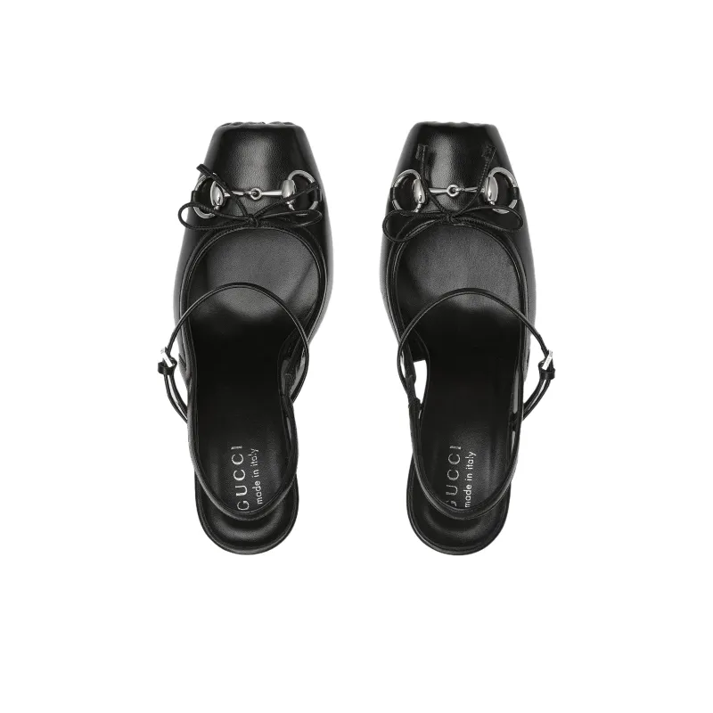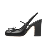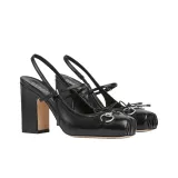 GUCCI Horsebit Застежка Грубый Каблук Высокий Каблук 9,4CM Женский Черный