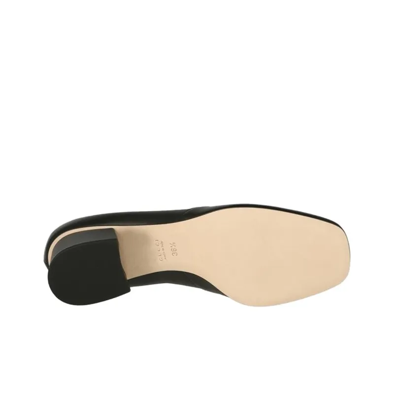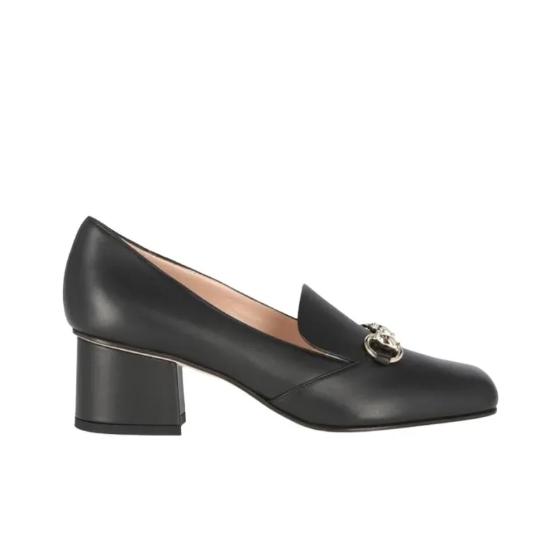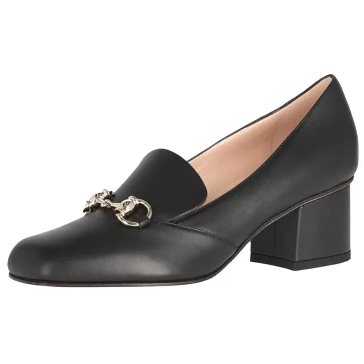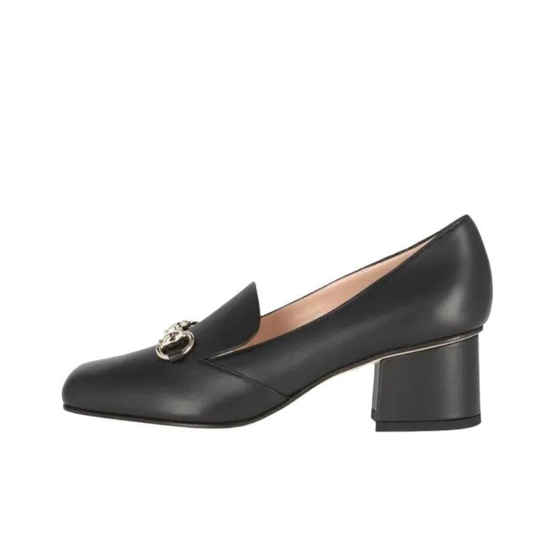 GUCCI Horsebit Buckle Грубый Каблук Высокие Каблуки Женские Черный