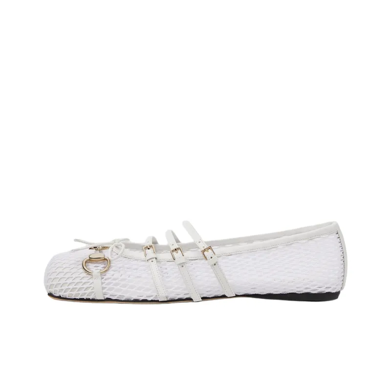 GUCCI Застежка Horsebit Планшет Мэри Джейн Женские Белые