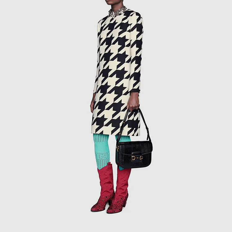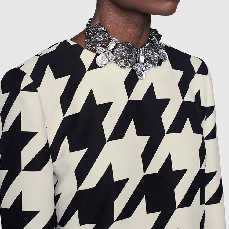 GUCCI Длинное платье с длинными рукавами женское черное и белое