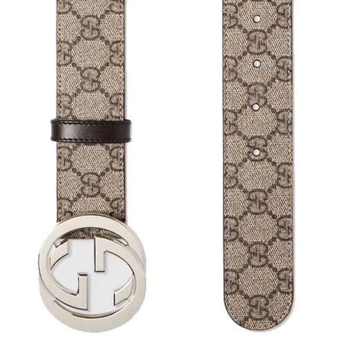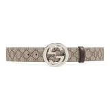 GUCCI Logo Украшение плавная застежка кожаные ремни мужской бежевый ширина 3,8 см