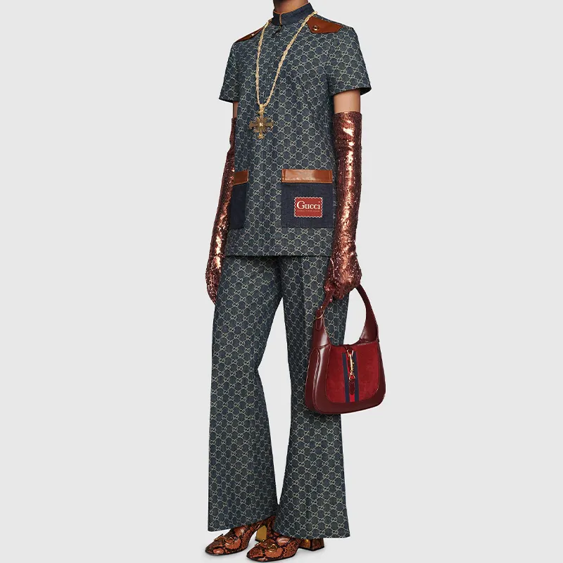 GUCCI Jackie 1961 Замша с кожаными вставками сумка на плечо сумка через плечо женская темно-красный