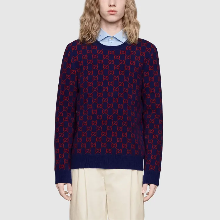 GUCCI Темно-синий Синий Мужской Кашемировый Свитер