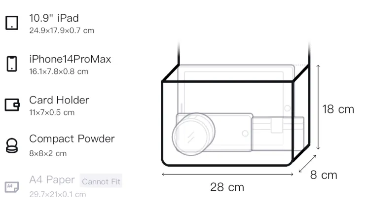 Длина*Ширина*H: 28*8*18 см