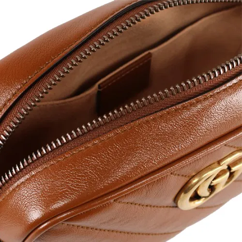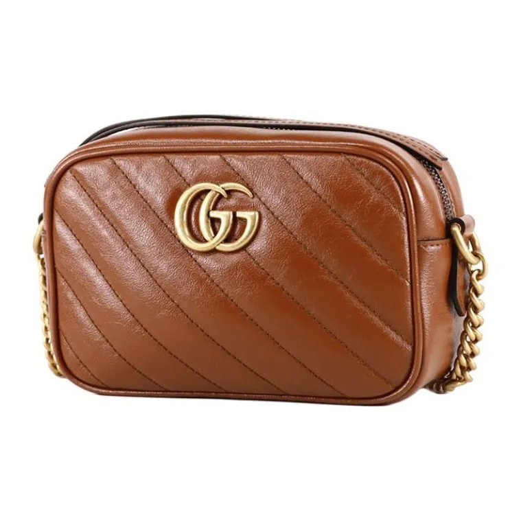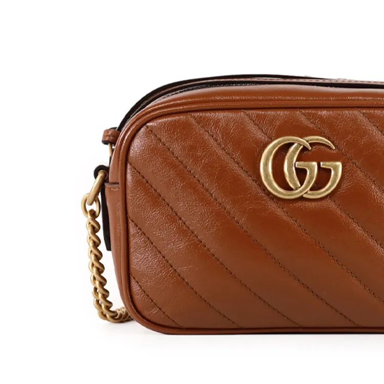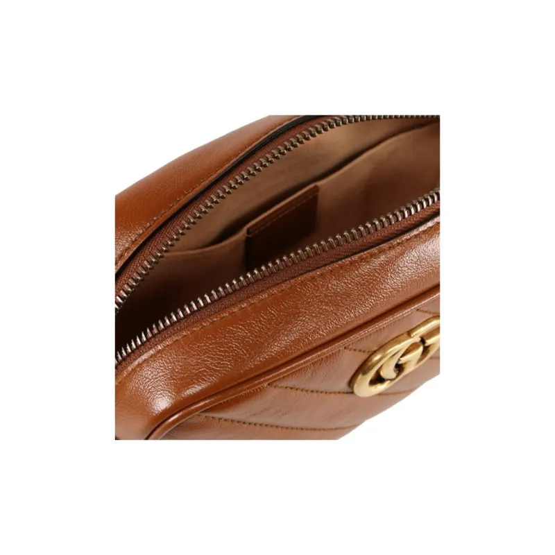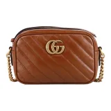GUCCI Marmont Quilted Кожа Camera Сумка Сумка с цепочкой Сумка через плечо Мини Женская Коричневая