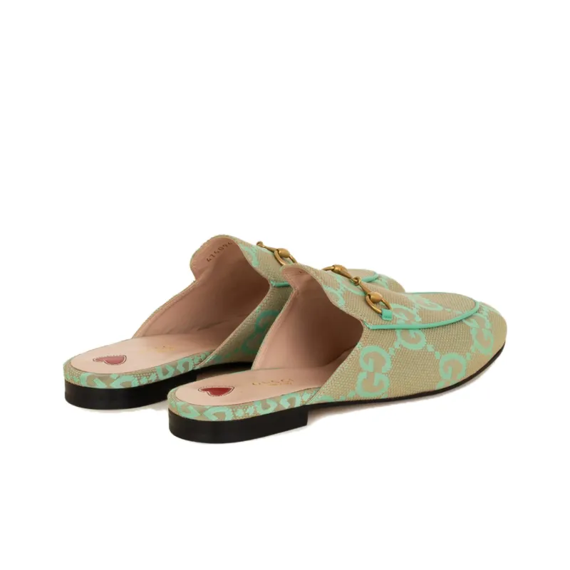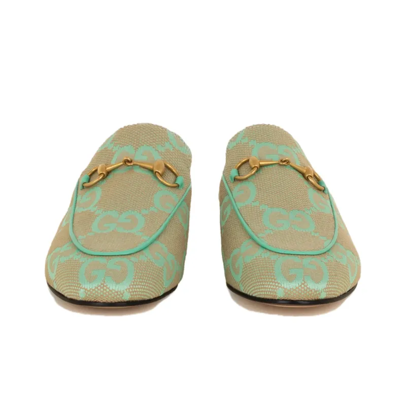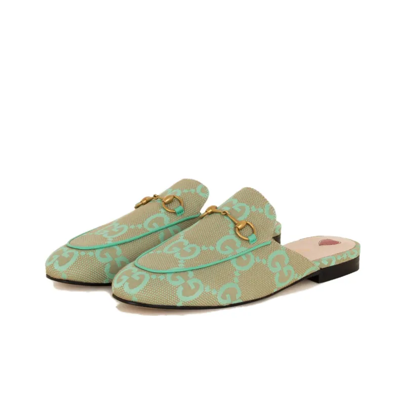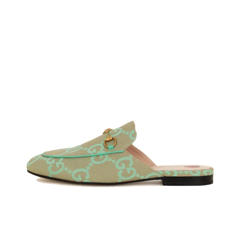 GUCCI Princetown Домашние тапочки Женские Зеленый Бежевый