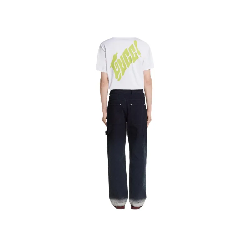 GUCCI Синий с Белым Lettering Мужские Джинсы
