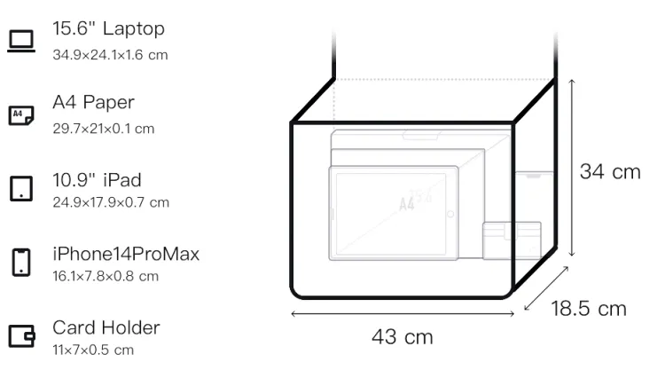 Д43*Ш18,5*В34см