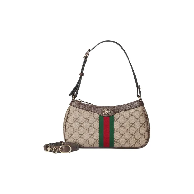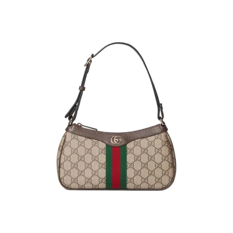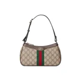 GUCCI Ophidia Холст Плечевая Сумка Маленькая Унисекс Бежевый Коричневый