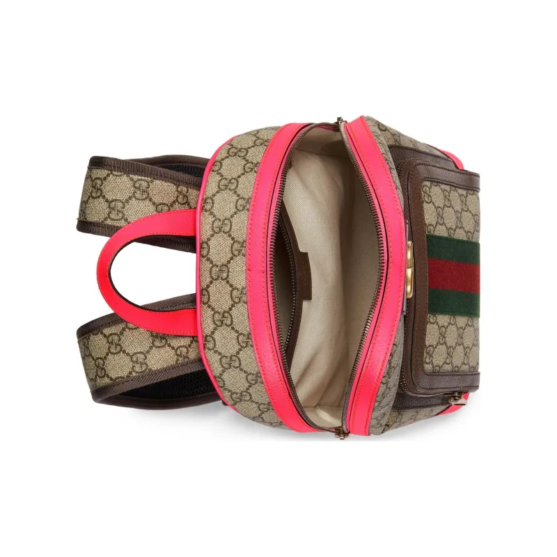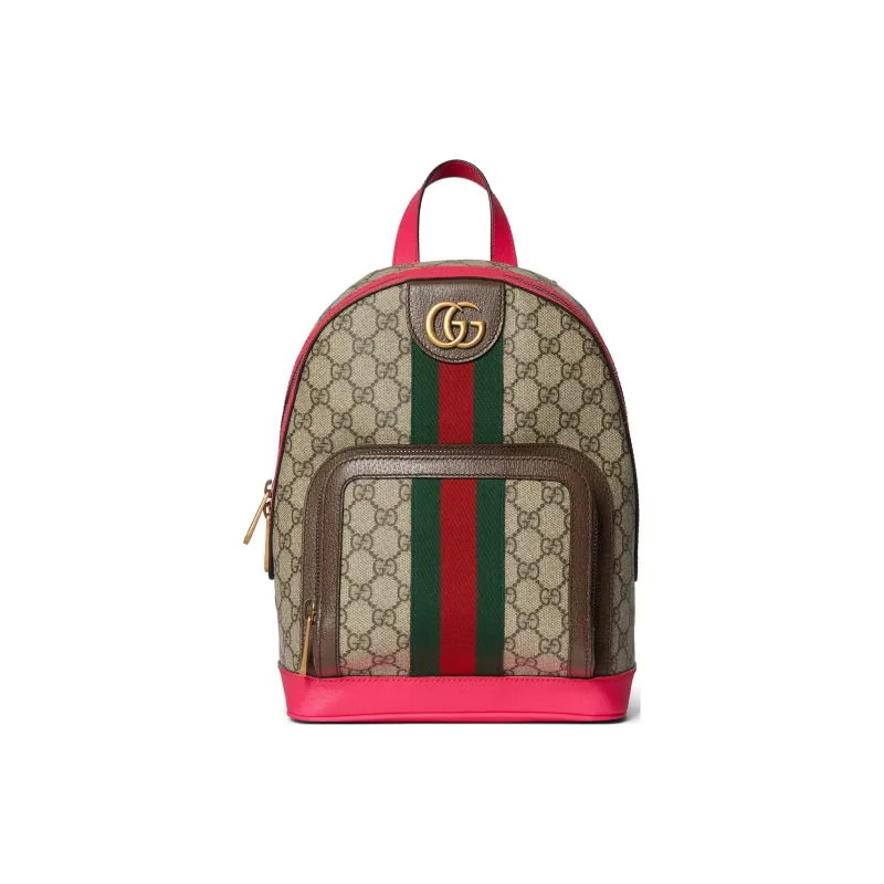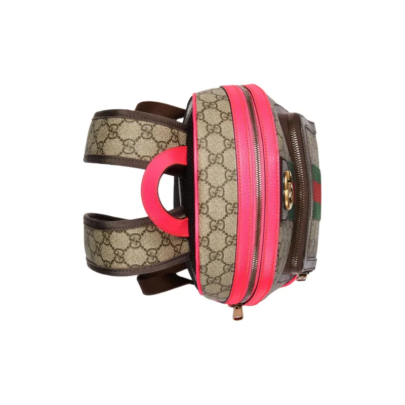 GUCCI Ophidia Холст с кожей Обметка Рюкзак Маленький Женский Бежевый Эбеновый Розовый