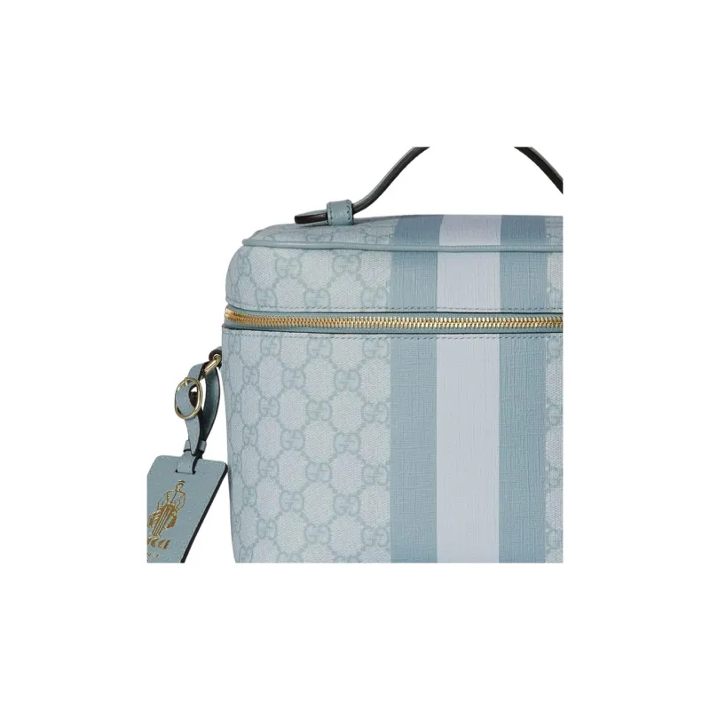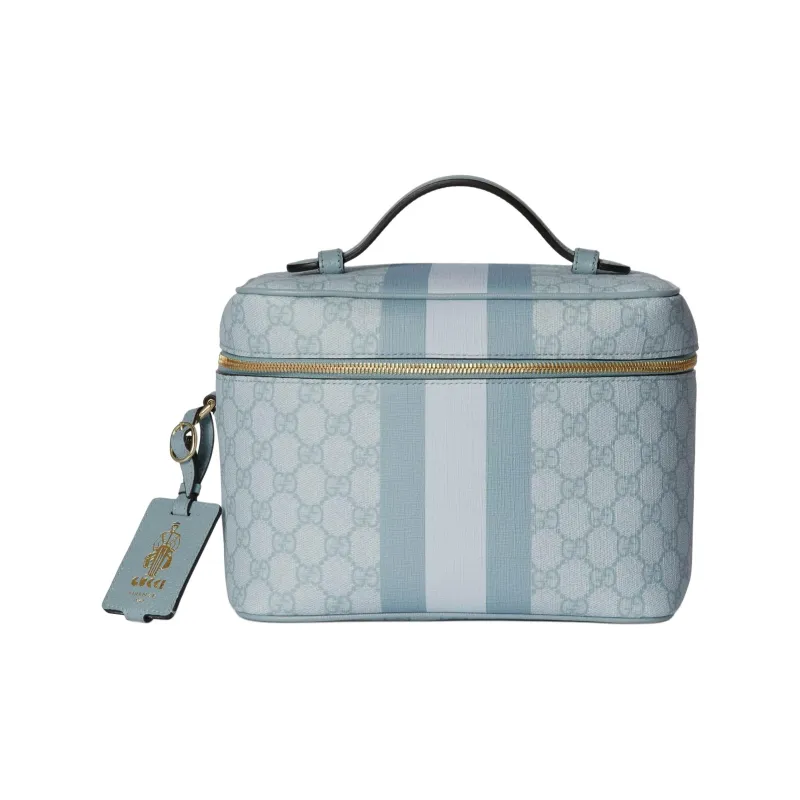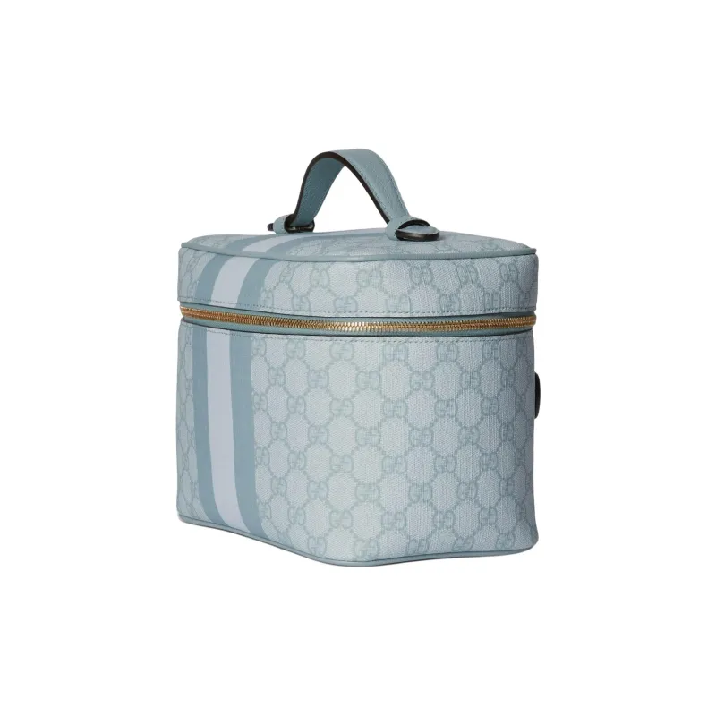GUCCI Ophidia Холст с кожей Обметка Портативный Путешествие Макияж Мешок для хранения Средний размер Женские Серо-голубой