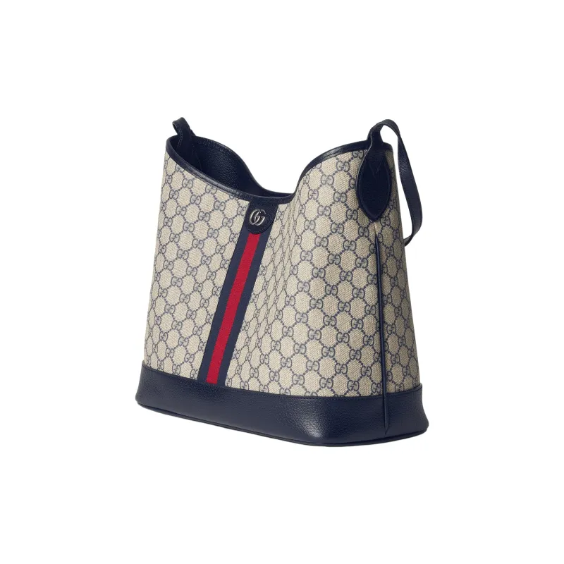 GUCCI Ophidia Supreme Холст и Кожа Сумка через плечо Сумка среднего размера Женская Бежевая и Синяя