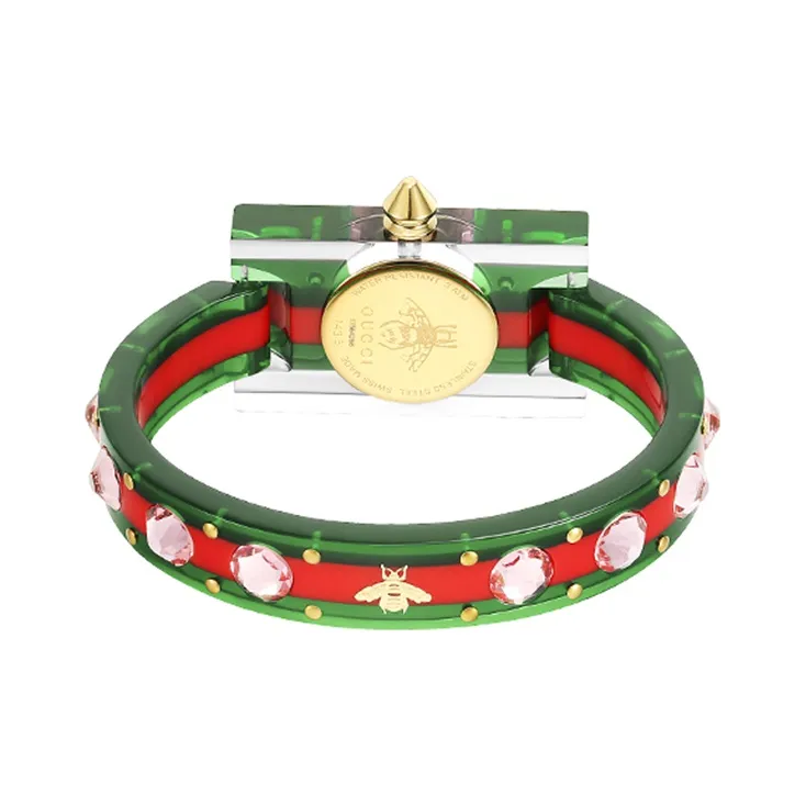 GUCCI Plexiglas Наручные часы Кварцевый механизм Смольный ремешок Розовый циферблат Женские часы