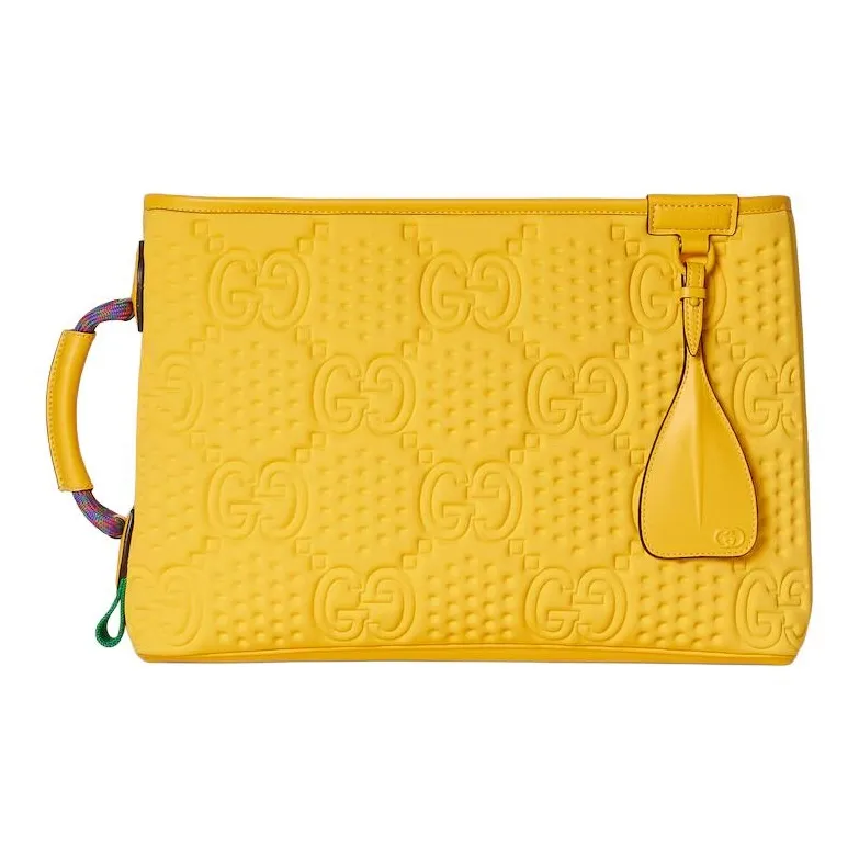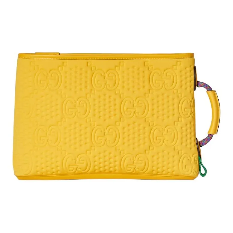 GUCCI Переработанный материал пэчворк с вискозой и полиуретаном кожа клатч большой женский желтый