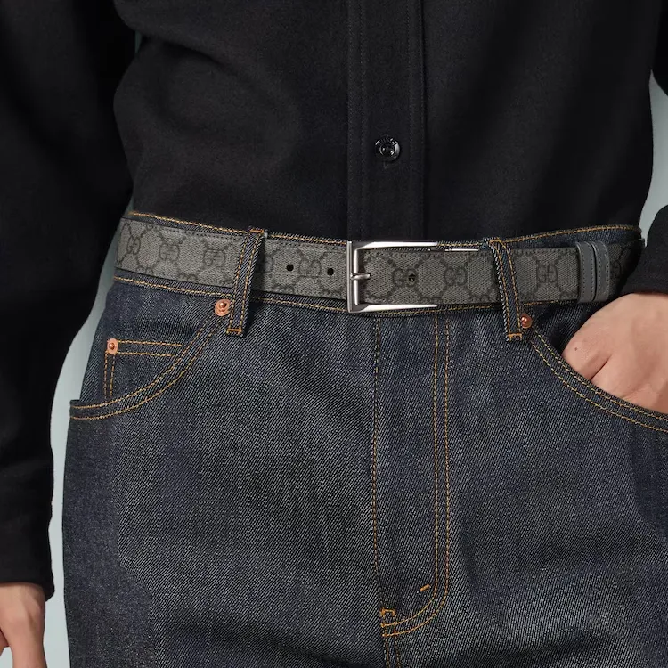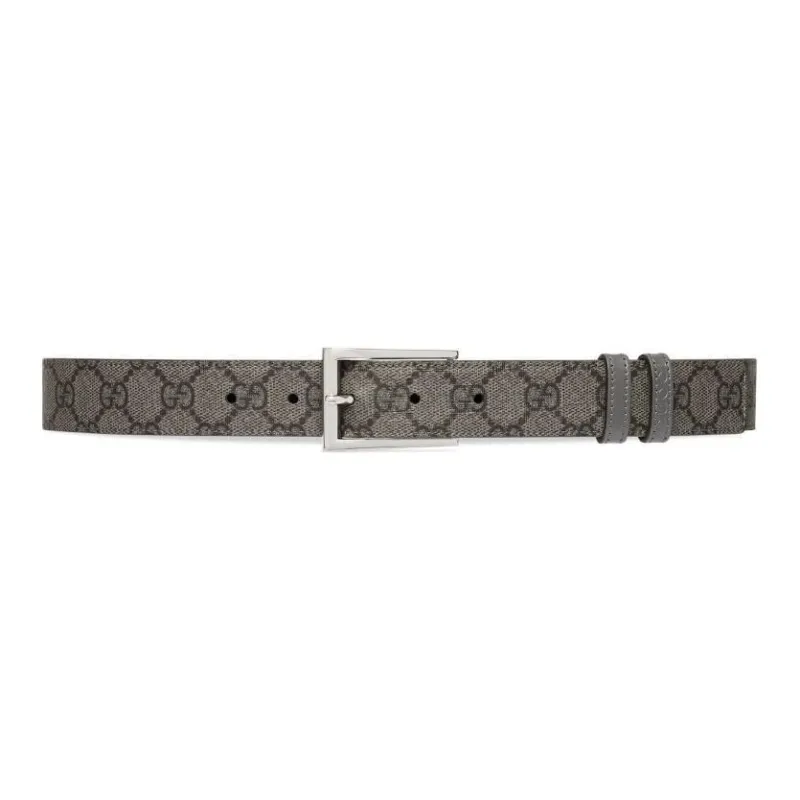 GUCCI Буква Этикетка Кожаные ремни Мужской Серый Ширина 3 см