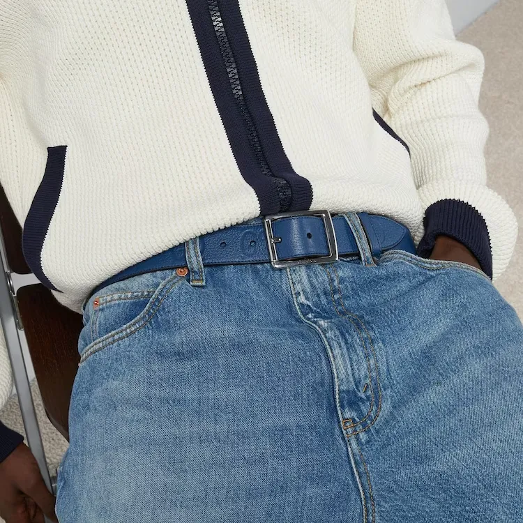 GUCCI Детали Украшение Шпилька Кожаные ремни Мужской Синий 3,3 см