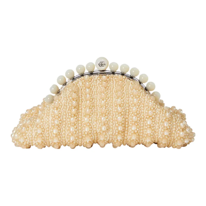 GUCCI Сатин Искусственный жемчуг Вечерний клатч Сумка Стандартный Женский Синий Бежевый