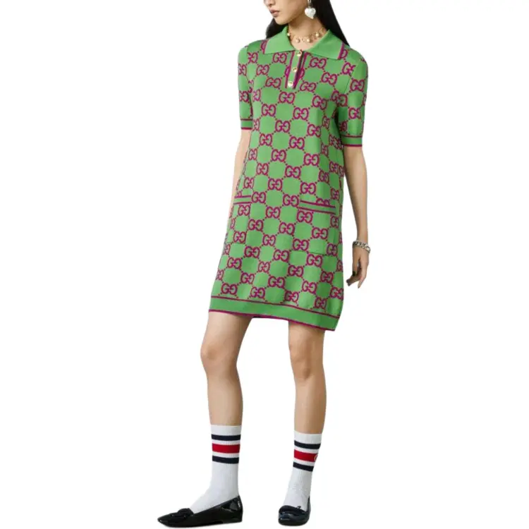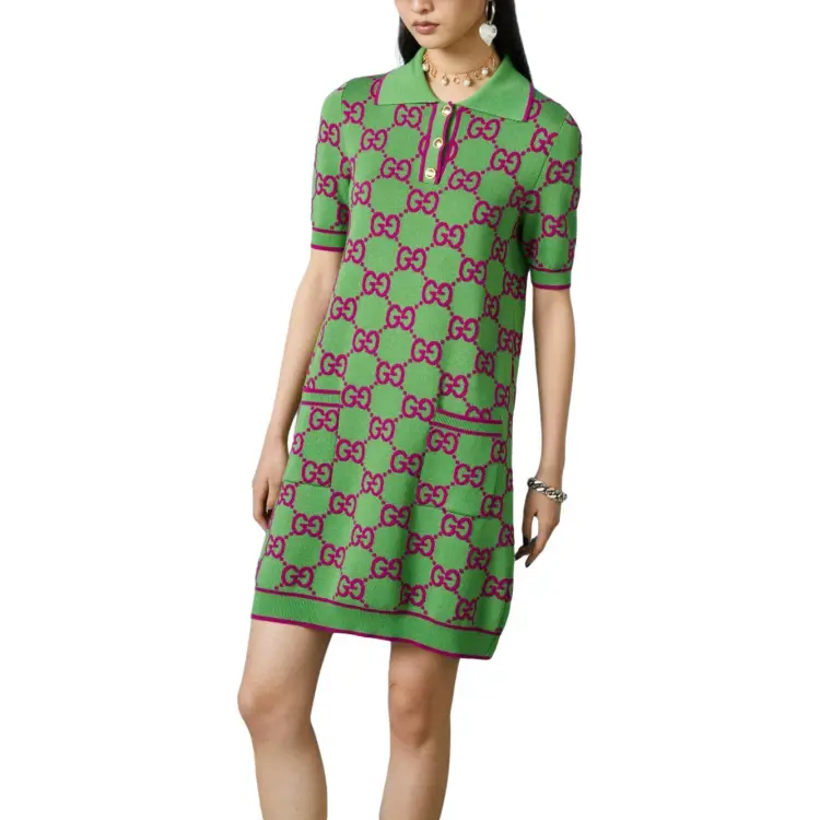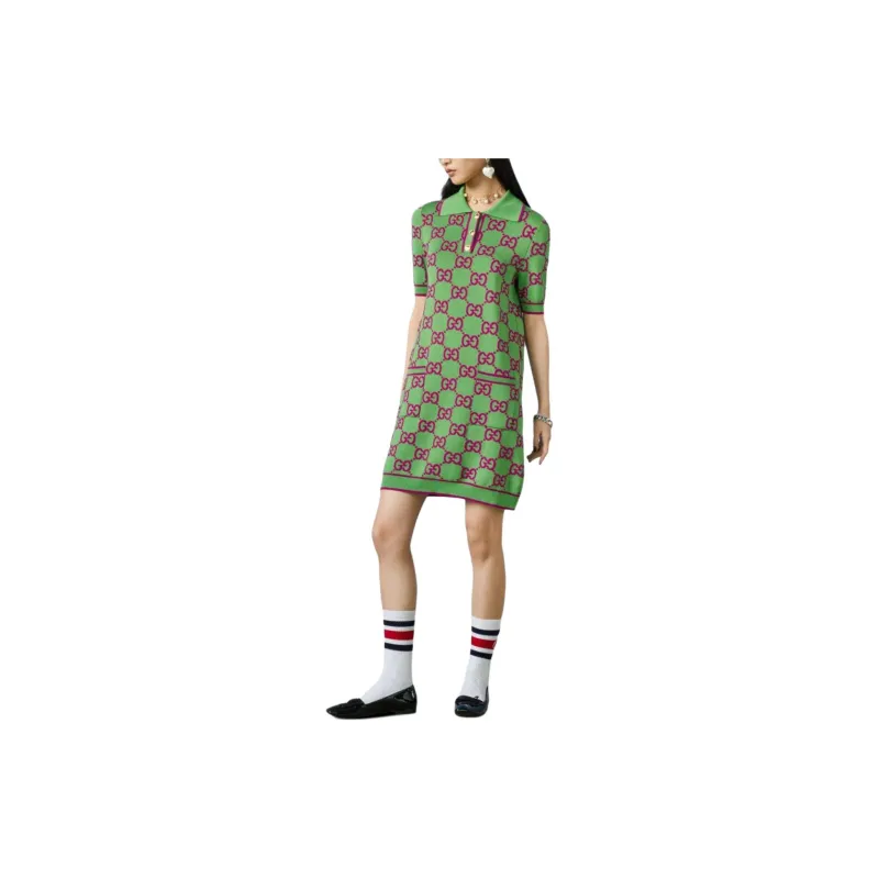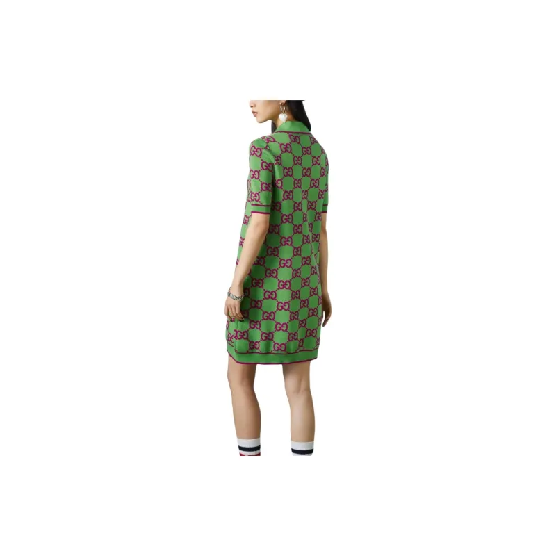 GUCCI Короткий рукав Платье Женское Зеленое
