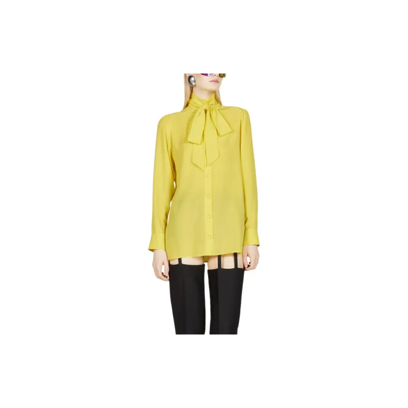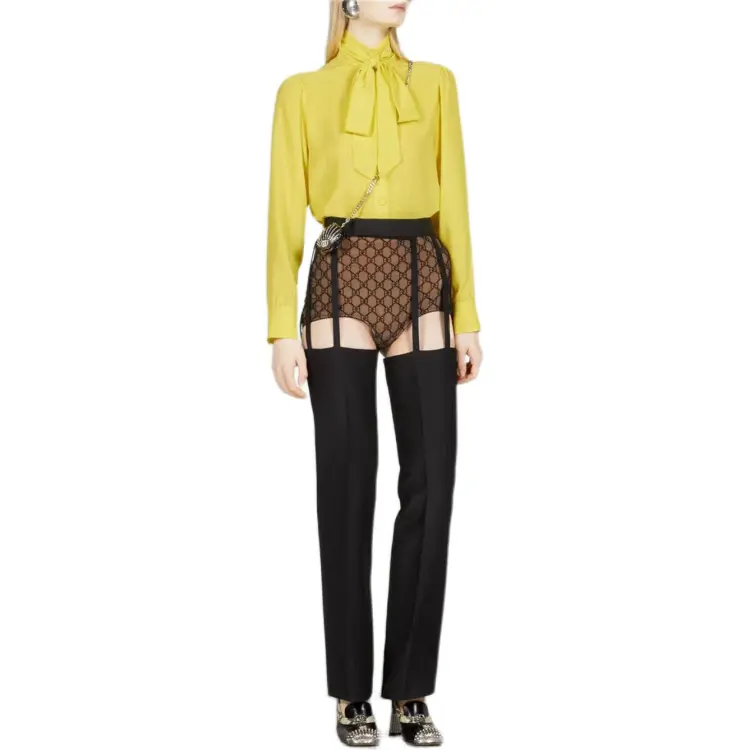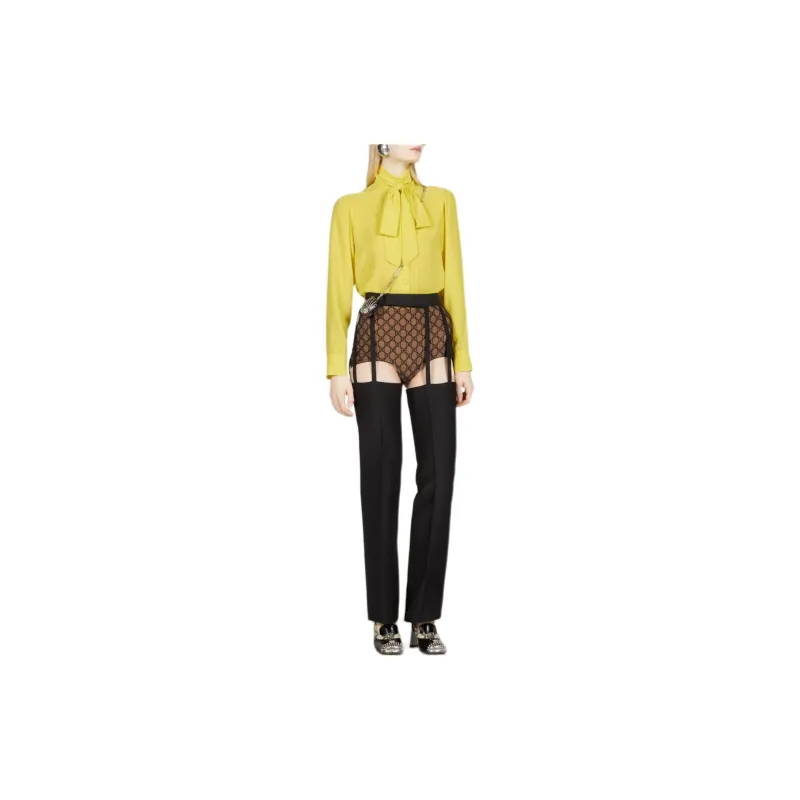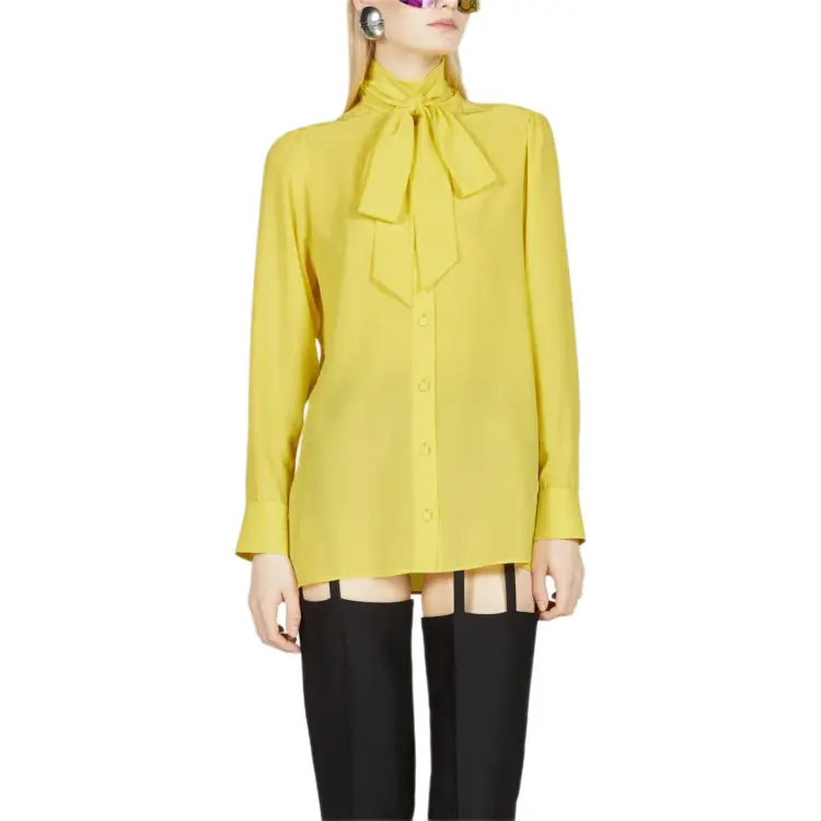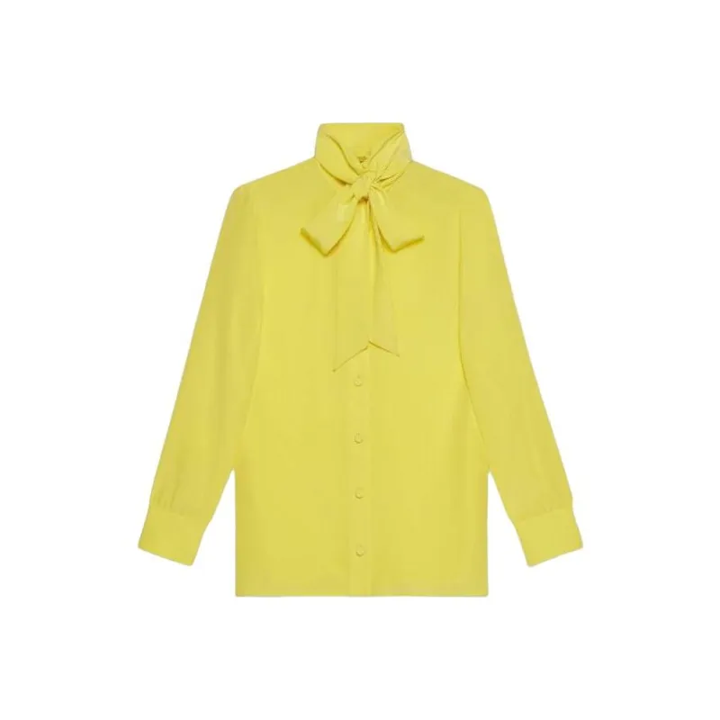 GUCCI Шелк Рубашка с Self Галстуком Арочной Рубашки Женская Желтая