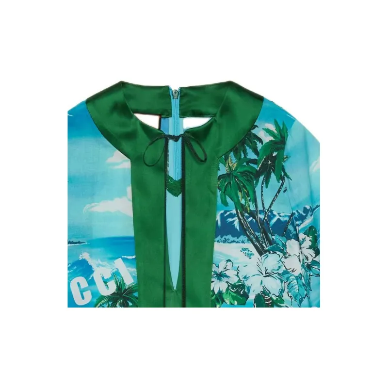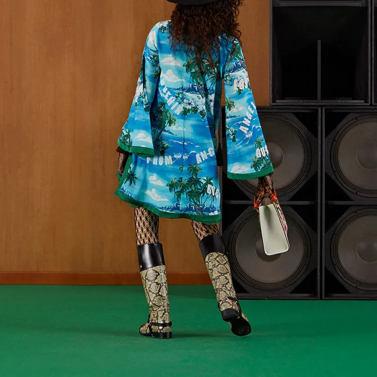 GUCCI SS22 Длинное платье с длинными рукавами женское синее