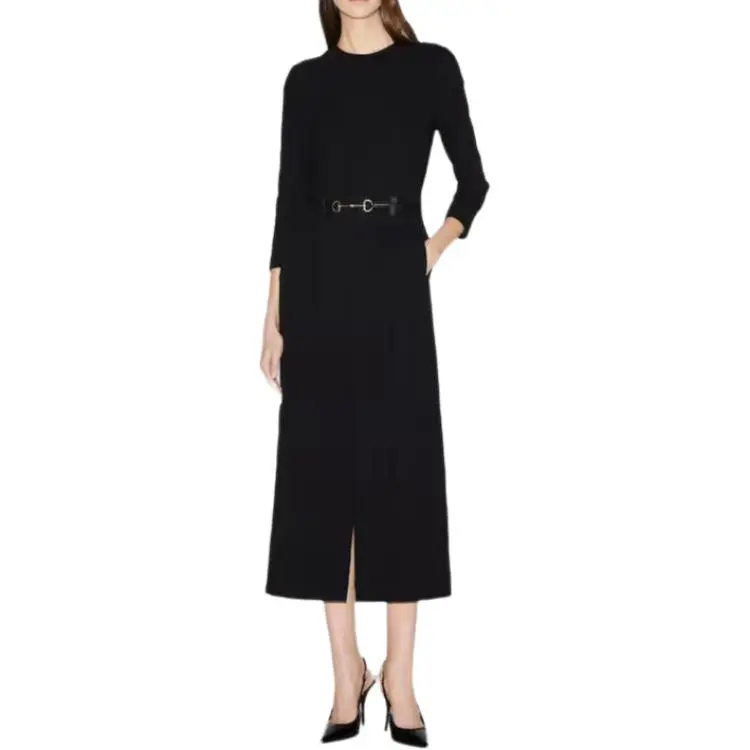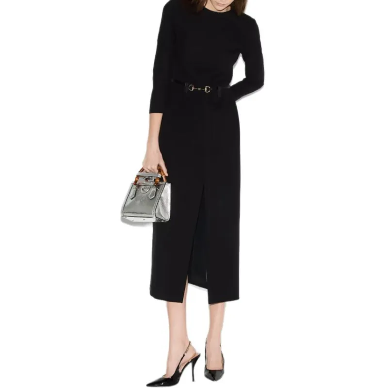 GUCCI SS25 Длинное платье с длинными рукавами женское черное