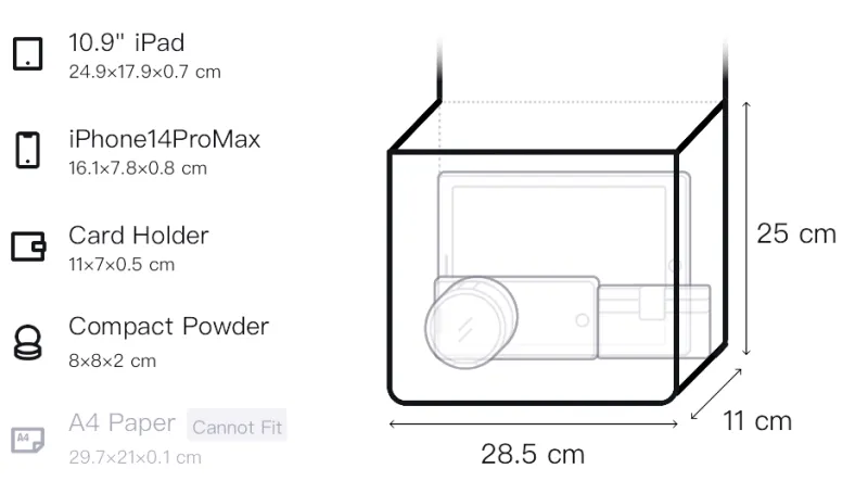 Д28,5*Ш11*В25см