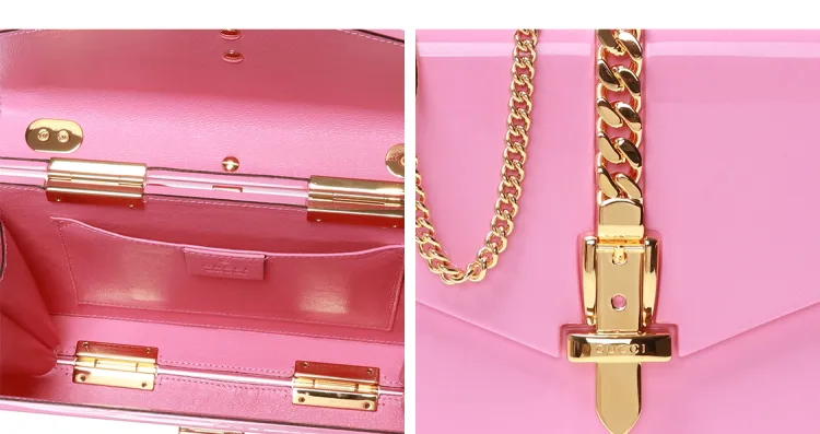 GUCCI Sylvie 1969 Оргстекло Коробка Сумка Цепь Сумка через плечо Сумка Женская Розовая