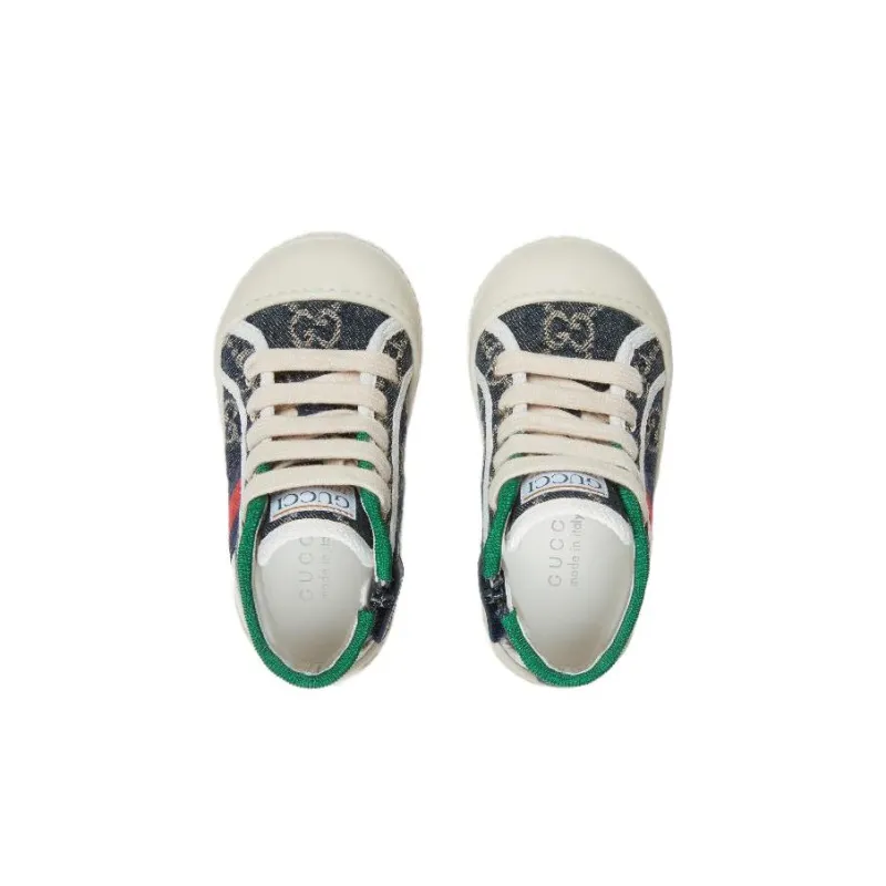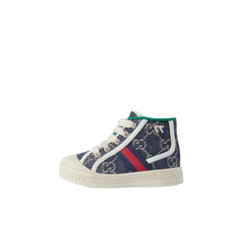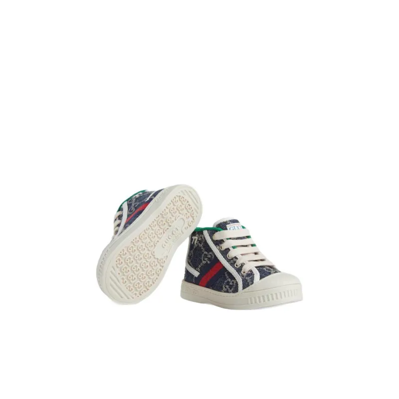 GUCCI Tennis 1977 Противоскользящие высокие туфли для малышей синие и белые для младенцев и малышей