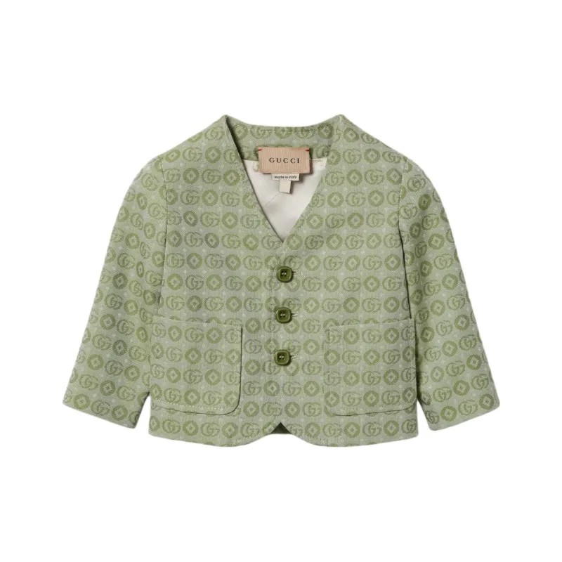 GUCCI Топы FW24 Детская одежда Double G Хлопок Куртка Светло-зеленый Infant и Toddler