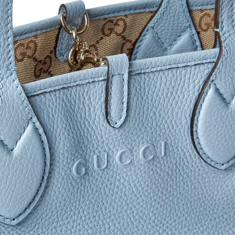 GUCCI Totissima GRAIN LEATHER с GG Холст Тоут Сумка Сумка для покупок Сумка через плечо Сумка Маленькая Женская Небесно-голубая