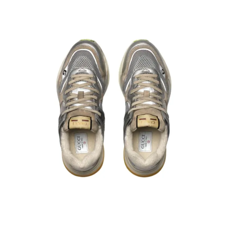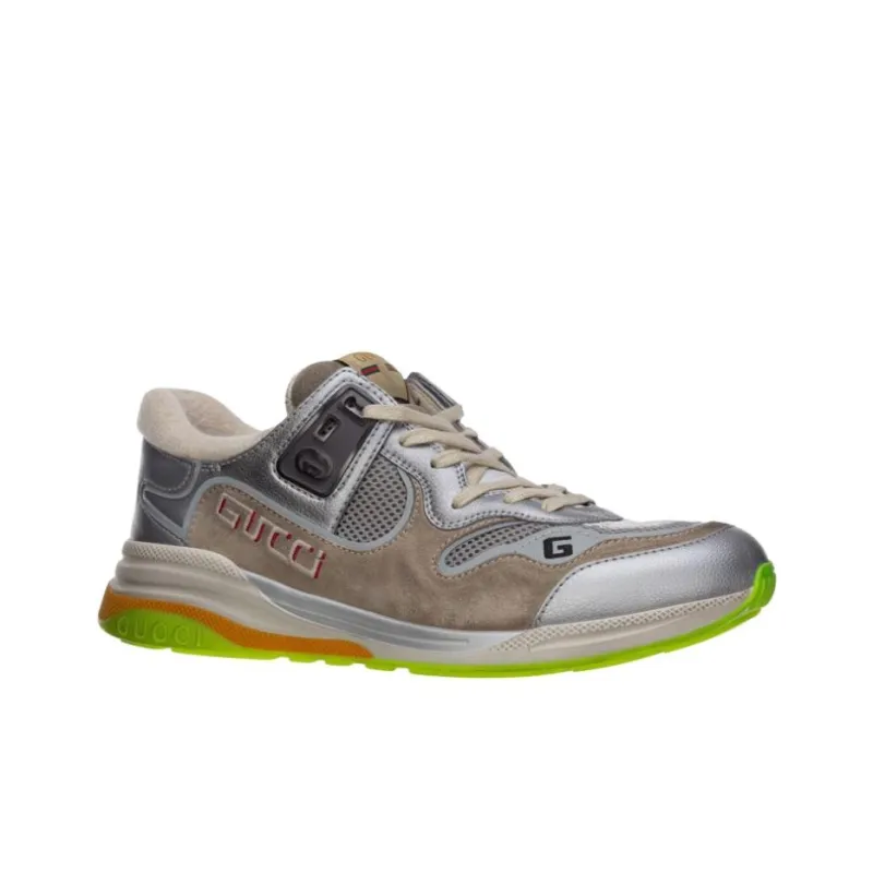GUCCI Ultrapace Серебряный Металлик Низкий Топ Спортивная Повседневная Обувь Мужская Серебряный Коричневый