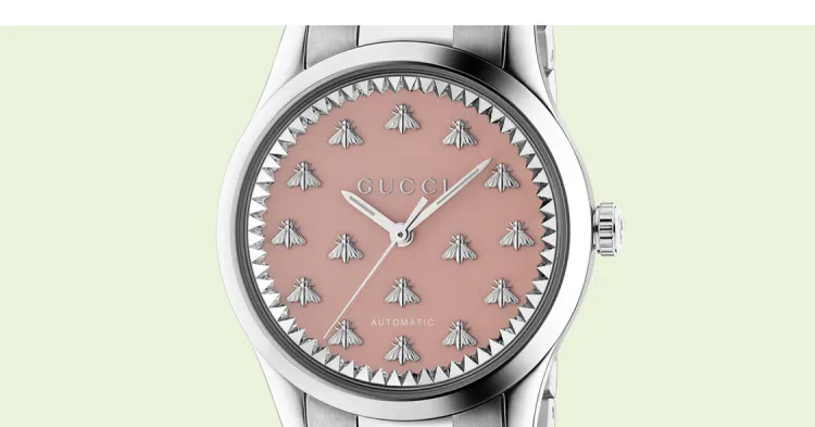 GUCCI Часы Автоматический Механический Механизм Ремешок из Нержавеющей Стали 38 мм Розовый Циферблат Женские