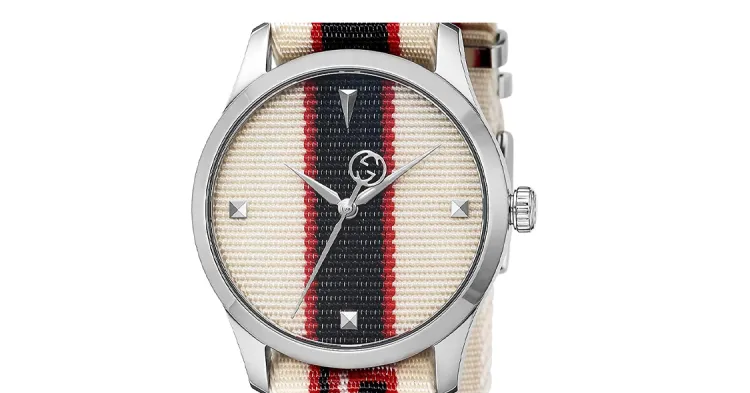 GUCCI Мужские часы Кварцевый механизм Тканевый ремешок 38 мм Бежевый циферблат Часы