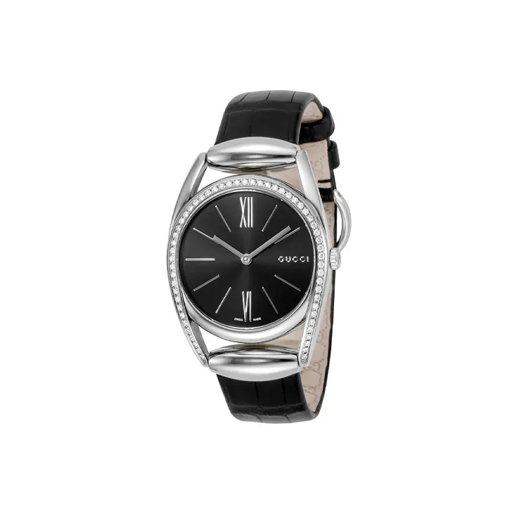 GUCCI Женские часы Кварцевый механизм Кожаный ремешок 34 мм Черный циферблат