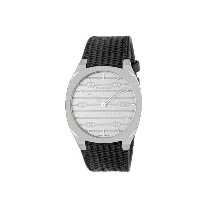GUCCI Женские часы Кварцевый механизм Кожаный ремешок 38 мм Серебристый циферблат