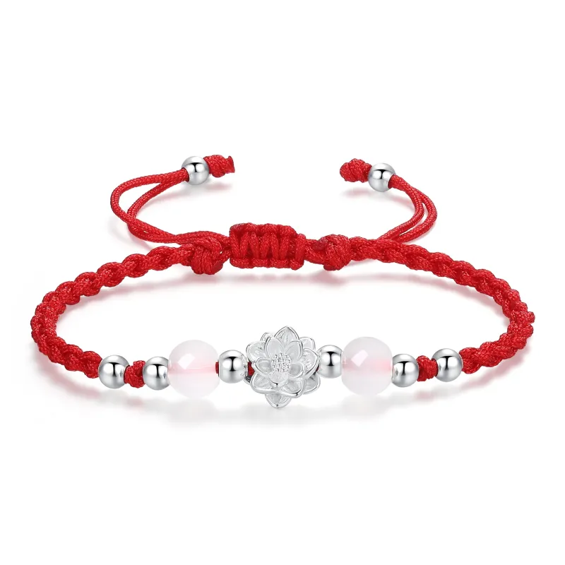 Стиль:Браслет-шнурок с цветком Лотос Twin Lotus (Красный)