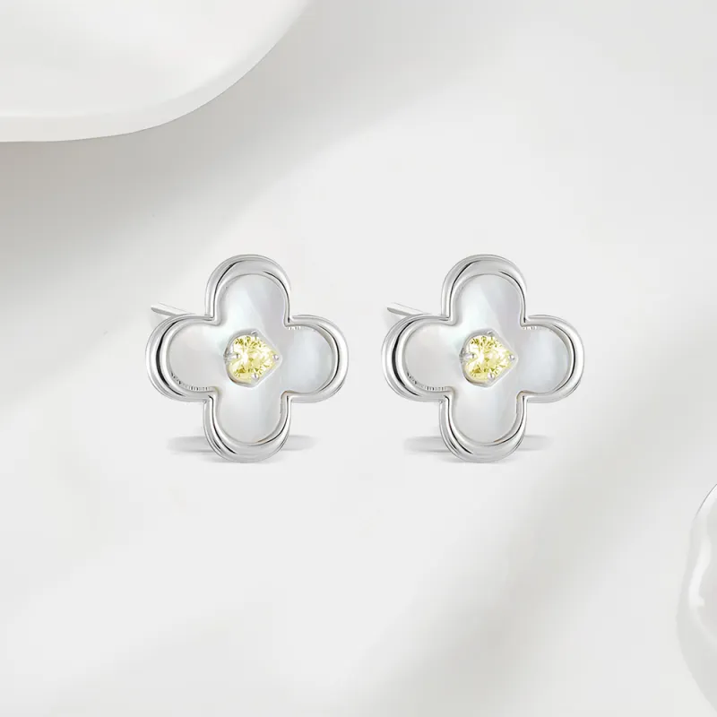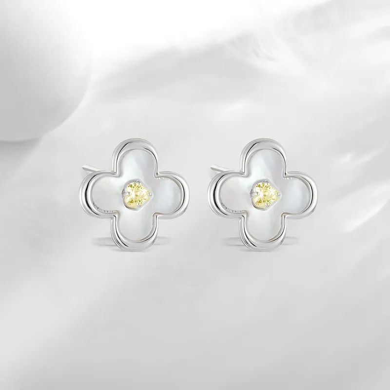 Клевер четырехлистный, серьги (желтый циркон)