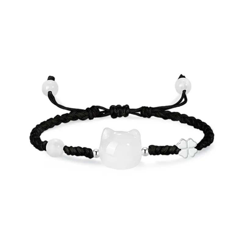 Браслет из чистого серебра S999 - Счастливая кошка, 1 пара (Черный + Черный)