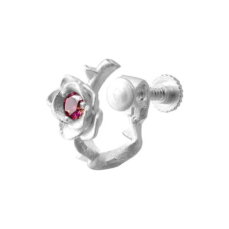 Стиль:Серьги-клипсы из стерлингового серебра с розовым цветком - одиночная штука