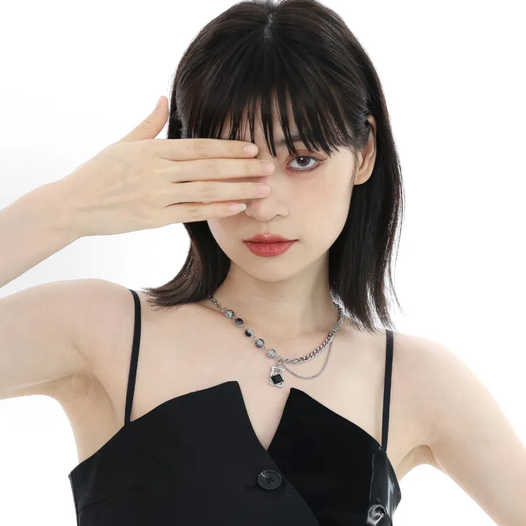 Колье с черной бусиной в форме блока с трещинами