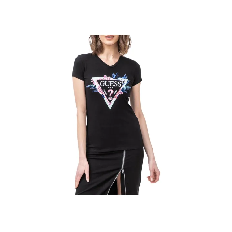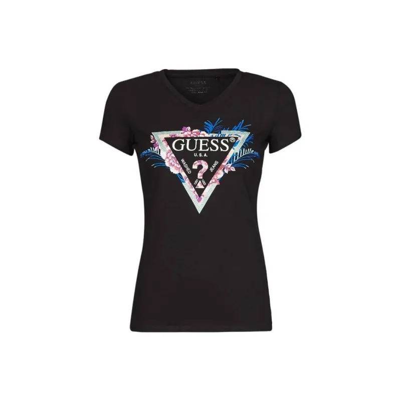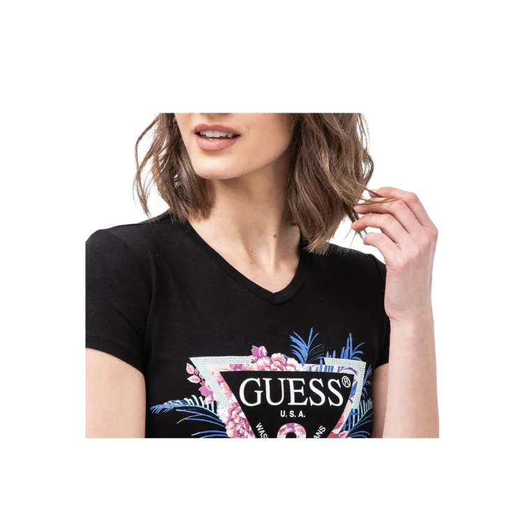 GUESS Т-рубашка с оборванным рукавом женская черная