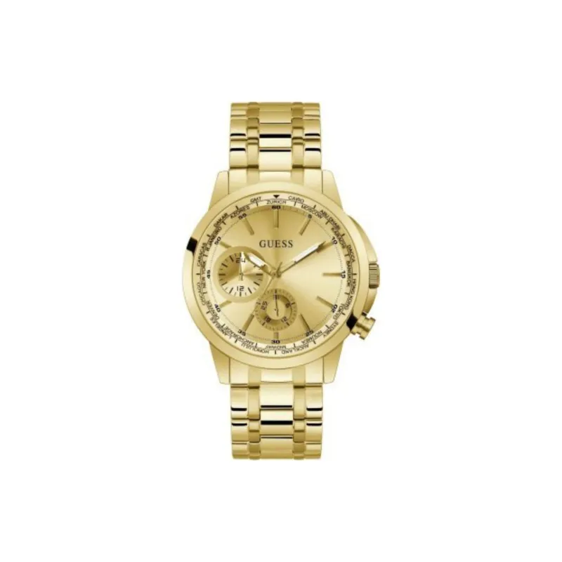 GUESS Мужские часы Кварцевый механизм Ремешок из нержавеющей стали 44 мм Золотистый циферблат